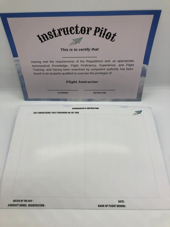 Flight Training Pilot Certificate Private Pilot Commercial Pilot Solo Flight Instructor Pilot Etsy Uk